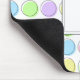This mouse pad features a pastel rainbow polka dot pattern with a monogram in the centre that can be personalized.