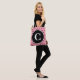 Chic reversible black polka dots on pink background. Front of bag has a large black circle to personalize with your monogrammed initial in white text. Fresh trendy geometric women's bag fashion for any season. Original designs © TamiraZDesigns. www.zazzle.com/tamirazdesigns