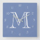Monogram White Script Numbers On Blue wccnt Square Wall Clock