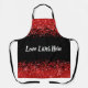 Cook and entertain in style with our chic monogram all-over-print apron. This elegant apron features the heartfelt message "Love Lives Here" prominently displayed in a white text, standing out beautifully against a black background. The top and bottom edges are adorned with a sparkling red glitter border, adding a touch of glamour and sophistication to your kitchen attire.