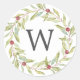 Monogram Winter Greenery Leaves Berries Christmas Classic Round Sticker