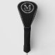 Classic monogram with name in a double round border personalized golf driver cover. Black with white and grey.