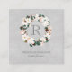 Carte De Visite Carré Monogramme Wreath Grey Linen icône de médias socia