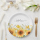 Monogram Yellow Flower Sunflower Floral Botanical Paper Plate