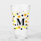 Monogrammed initial in black on front and backside against white background.. Colourful geometric polka dots floating in yellow, orange and black. Fun for fall for any season. Original Artwork Design © TamiraZDesigns.