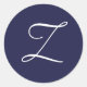 Monogram Z, White on Navy Blue, Classic Round Sticker