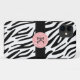 Trendy monogram zebra print iPhone 5 case features black zebra stripes and a accent black border with a pastel pink volleyball for your initial. Show your personality with this trendy and fun iPhone 5 case. Makes a great gift for all occasions. Click the "Customize it!" button to change the background colour, text colour, text size, font style and more!