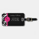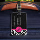 Travel in style with our personalized monogram zebra stripe luggage tag that features white zebra stripes and a pink accent border on a black background with a round pink accent frame for your initials and your information on the front. The back of the luggage tag features white zebra stripes on a black background. A cool and fun way to decorate and identify your luggage. Show your personality with this fun and trendy luggage tag. Makes a great gift for all occasions. Customize with your personal or business information. Click the "Customize it!" button to change the font size, font colour, font style and more!