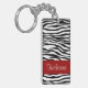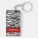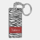Stylish and trendy zebra stripes keychain features black and white zebra stripes and a red accent border frame for your information on the front and back. Add your name, initial or other text. Show your personality with this fun and trendy keychain. Makes a great gift for all occasions. Click the "Customize it!" button to change the font size, font colour, font style and more!