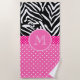 Monogram Zebra with Hot Pink Polka Dot Pattern Beach Towel