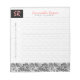 Monogramed elegant black floral lace over white damasks, customizable notepad template. Suggested pink colour font.