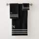Monogramed Black Silver Striped Gift Bath Towel Set