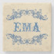 Monogramed Blue & Cream Floral Swirl Pattern Stone Coaster