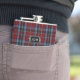Handsome flask with the classic blue and red clan MacTavish tartan plaid pattern. Personalize the three letter monogram, on the metal looking plaque, to suit your needs. Great gift idea for any guy and especially great as a wedding party gift for groomsmen.