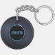 Monogramed Dark Blue Metallic Brushed Metal Look Keychain