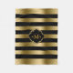 Monogramed Gold & Black Stripes Geometric Pattern Fleece Blanket