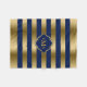 Monogramed Gold & Blue Stripes Geometric Pattern Fleece Blanket