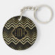 Monogramed Gold Glitter & Zigzag Chevron Pattern Keychain