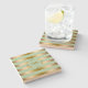 Monogramed Gold & Green Stripes Geometric Pattern Stone Coaster
