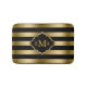 Monogramed Gold Stripes Geometric Pattern Bath Mat