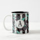 Monogramed Grey Teal Floral Stripe Pattern Two-Tone Coffee Mug