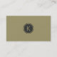 Modern monogramed olive green linen texture look(image that looks like linen) with black circle and customizable monogram on front. Fully customizable event designer, business card template. All colours are available by email request.