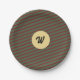CHristmas vibes inspired Minimalist simple stripped design with red stripes over green background that you can personalize by adding your initials and your lover and family's names to get a cool matching family initial paper plate for winter holiday 2022