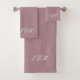 Ensemble de serviettes de bain monogrammé. Serviette de bain, serviette et linge de toilette avec votre monogramme personnalisé. Dans le mode monogramme traditionnel, la lettre du milieu de la série représente le nom de famille de la personne et est donc une police plus grande. Le format est le prénom initial, le prénom initial, le prénom initial, le milieu initial