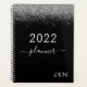 2022 Parties scintillant argentée et noire Nom du monogramme ou Carnet initial du calendrier spiral. Cela rend le cadeau parfait pour 16 ans, mariage, douche nuptiale, anniversaire, baby shower ou bachelorette pour quelqu'un qui aime le luxe glam et les styles chic.