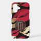 Belle et glamour pour elle, cette boîte téléphonique présente un motif arrière - plan d'images de lèvres rouge et or sur noir dramatique. Votre monogramme est au centre inférieur en or clair, placé sur une bannière semi-transparente qui est également doublée en or fin. Elle va adorer ce coque !