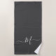 Moderne Solid Plain Gris Basique Blanc Script Monogramme initial Plage Serviette