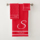 Moderne Stylish brillant rouge et blanc Monogramme initial et nom Serviette de salle de bain, conçu par Sandy Closs