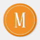 Un aimant rond avec un monogramme blanc sur un arrière - plan orange. Customisez l'aimant avec vos initiales ou initiales, couleurs, entre autres options.