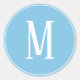 Un autocollant rond classique avec un monogramme blanc sur un arrière - plan bleu clair. Customisez l'autocollant avec vos initiales ou initiales, couleur arrière - plan, entre autres options.