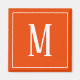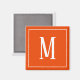 Un aimant carré avec un monogramme blanc sur un arrière - plan orange vif. Customisez l'aimant avec vos initiales ou initiales, couleurs, entre autres options.