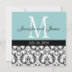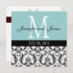 Monogramme bleu blanc Damas Faire-part de mariage