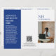 Brochure triplée moderne (dépliée) avec un design simple et minimal bleu et blanc avec votre monogramme en caractères gras avec votre nom d'entreprise et votre photo sur le devant. L'intérieur a votre liste de prix / menu service et l'arrière a vos coordonnées et code QR optionnel. Vous pouvez supprimer les trois marques QR Code dans l'outil d'édition de conception.