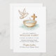 Cette invitation classique au baptême de style monogramme présente une couronne fleurie, une croix bleue et une disposition intemporelle. Idéal pour les cérémonies officielles de petit garçon.