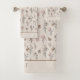 Un joli motif boho de beige crème rose clair avec des feuilles noires sur cet ensemble de serviettes de bain. Monogrammez-le avec vos initiales ou votre nom.