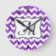 Parties scintillant violet moderne Chevron Zig Zag Tissu de bande Imprimer Motif Monogramme initial Horloge murale personnalisée