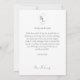Belle carte "merci" à plat à deux faces de mariage chic et élégant. Cette carte mémorable présente une photo de couple et un joli ensemble de polices contemporaines en blanc à l'avant. Le verso de la carte inclut une zone de texte en police vert foncé, contre un arrière - plan blanc. Deux initiales sont monogrammées avec un cadre floral vert doux au fond. CONSEIL : Si vous préférez écrire les cartes à la main, laissez simplement la zone de texte vide.
