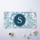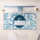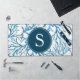 Ce tapis de bureau abstrait a été conçu en utilisant mon aquarelle originale corail de mer dans les tons bleu sur un arrière - plan blanc. Customisez avec votre monogramme initial en blanc sur bleu marine. Ou ajoutez votre logo. Une idée de décoration de bureau unique pour votre bureau à domicile sur le thème côtier et votre petite entreprise.