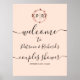 Un feuillage chic simple rose feuille or monogramme pêche roses couples douche panneau de mousse de bienvenue. Facile à personnaliser avec vos détails. Boho moderne couples douche bienvenue panneau en mousse modifiable, personnalisable, calligraphie police manuscrite, simple, élégant. PERSONNALISATION : Si vous avez besoin de personnalisation de la conception, veuillez me contacter par conversation ; si vous avez besoin d'informations sur votre commande, les options d'expédition, etc, veuillez contacter Zazzle support https://help.zazzle.com/hc/en-us/articles/221463567-How-Do-I-Contact-Zazzle-Customer-Support- directement
