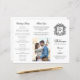 Ces programmes de mariage triplés sont présentés comme une feuille de papier à plier manuellement. L'élégante crête monographique a les initiales de la mariée et du marié en caractères de script fantaisie sur le devant. Les programmes sont parfaits pour de longues cérémonies, avec l'ordre des cérémonies sur les trois volets intérieurs. L'extérieur a la fête de mariage, merci note, et une photo du couple heureux.
