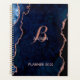 Un design moderne, marine et doré rose agate est la toile de fond de cet élégant planificateur. Votre monogramme dans une police de calligraphie élégante est la pièce maîtresse de ce design chic. Ajoutez votre nom au planificateur et faites-le vous-même.