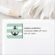 Bandes marines vertes à la menthe avec ancre gris charbon et monogramme.