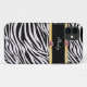 Jewel le cas de l'iPhone 5 de monogramme avec les gemmes roses assez imprimées de diamant bling et refroidissez le motif de rayures de zèbre avec des accents imprimés d'or. Personnalisez le monogramme avec tout le nom ou initiales. Protège votre téléphone portable dans le style et a des ouvertures pour tous vos ports et boutons. Conçu pour des dames ou des filles qui comme des zèbres ou des bijoux de diamant.