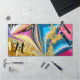 Un superbe tapis de bureau monogrammé de nom, qui aura l'air superbe sur n'importe quel bureau, et égayer n'importe quel bureau ou bureau. Le design se compose d'un majestueux papillon magique en forme de fée dorée, avec son magnifique long sentier de tourbillons dorés, surplombant une fleur abstraite en marbre liquéfié, magnifique et unique, avec des pétales violet, bleu, rose, jaune, noir, gris, violet et or. Un art abstrait épuré moderne unique et élégant, créé avec un flux de couleur artistique fusionné avec effet de marbre liquéfié. À gauche en bas de ce tapis de bureau unique il y a une police élégante monogrammed nom initial "M", qui est facilement personnalisable et peut être personnalisée pour correspondre à votre propre nom. Ce tapis de bureau unique est une grande typographie liquéfiée idée cadeau d'art abstrait pour elle., rehaussant n'importe quel bureau et espace de travail avec son ambiance magique. Ce magnifique tapis de bureau fait partie de la collection "Monogrammed Liquid Abstrait Desk Mats", conçue par Abstrait a Dream Studios and Shop. Avertissement - L'achat d'un produit avec mon art sur celui-ci par Zazzle, ne vous autorise pas à reproduire mon art de quelque manière que ce soit, pour quelque raison que ce soit. Merci pour le respect de mes créations artistiques.