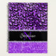 Motif empreinte de léopard noir et violet glamour sur le dessus. Faux parties scintillant violet de luxe au fond. Un bar noir aux faux strass brillants. Créez votre propre planificateur monogramme personnalisé de calligraphie chic girly. Choisissez votre style de police de calligraphie contemporaine préféré.