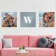 Cherchez des souvenirs de famille avec ce jeu d'impression comprenant deux photos et votre monogramme de famille sur arrière - plan gris-bleu.